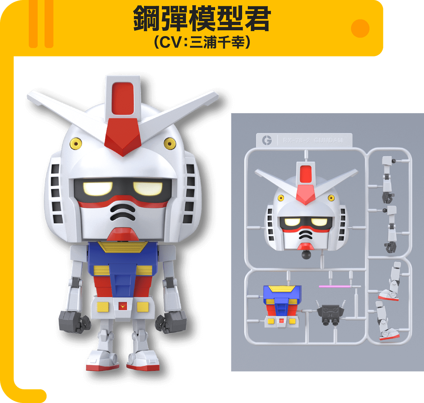"在這個故事中,「鋼彈模型君」一行人滿腔熱血地 希望能將塑膠模型的樂趣與魅力推廣到世界各地, 於是發揮自己的熱情與強迫推銷的欲望, 詼諧幽默地向人們呈現精彩絕倫(?)的劇情。"