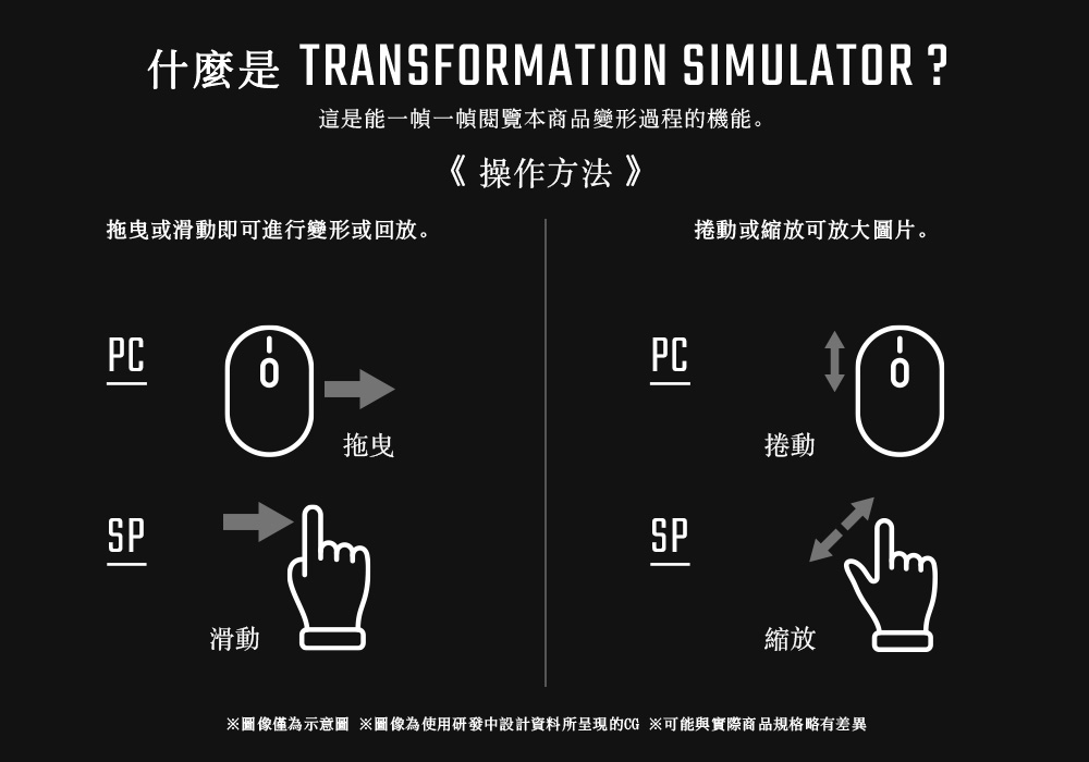 ※拖曳或滑動畫面即可一幀一幀閱覽變形過程。