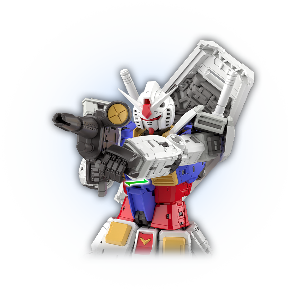 鋼彈在故事中既是機械,也是兵器,更擁有屬於人型機器人的機動性,可說是極具魅力。「RG RX-78-2 鋼彈Ver.2.0」在兼顧作為MS充滿了機械感的魅力,以及近似人類的靈活動作之餘,亦致力於做到無論是擺出什麼動作,都能無損於鋼彈原有設計所具備的帥氣感。