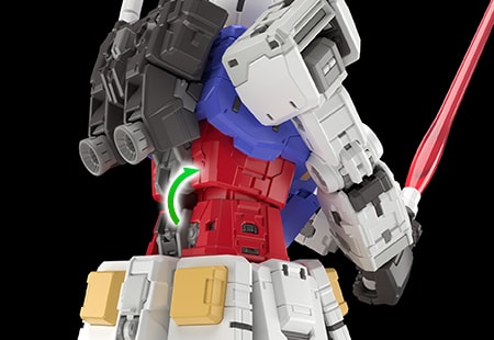 各部位並非純粹依賴嵌組方式固定,還會視構造而定採用扣鎖機構。隨著能夠有效地避免零件脫落,得以充分享受到RG的賣點,亦即能夠擺出各種深具動感的架勢。