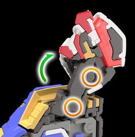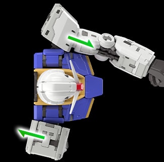 肩部連接處為縱向的橢圓形設計,使得手臂在組裝時有2階段的高度可供選擇。受惠於這個構造,連同手臂一起活動的肩甲也得以擴大可動範圍。