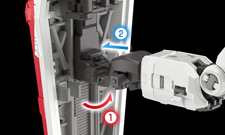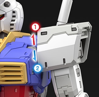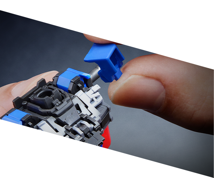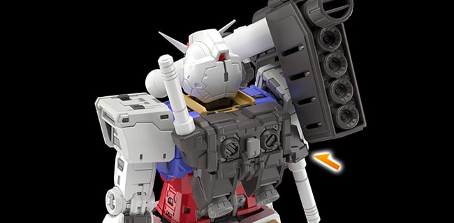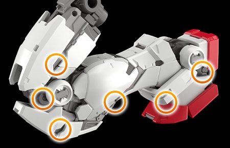推進背包和腰部內藏有能用來連接武裝或可動展示架的組裝槽共計2處。這兩處在未使用時都能藉由可動式艙蓋零件遮擋住,不會有損於造型美感。