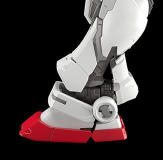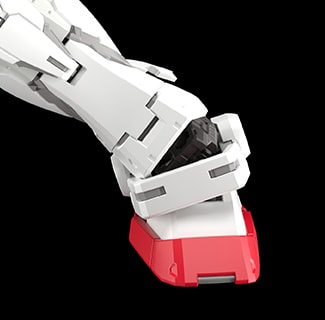 小腿下側的裝甲可前後展開,藉此擴大腳部的可動範圍。除此之外,踝關節還採用了雙重可動軸設計,在擺設腳部動作時能避免被側面的踝護甲給卡住。