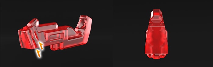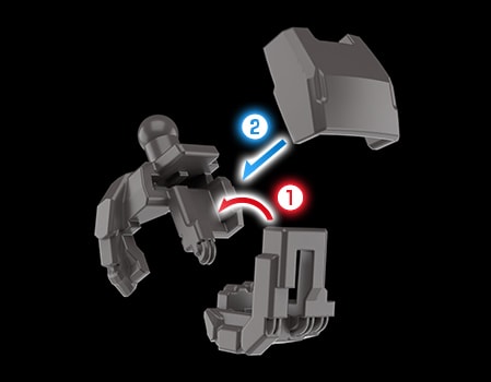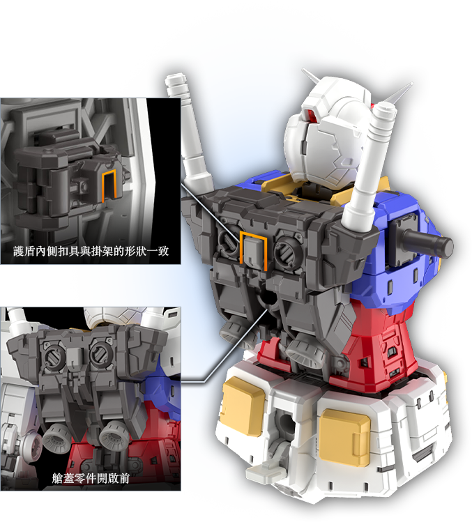 機體背部採用獨家的扣鎖零件。藉此銜接A零件(上半身)及B零件(下半身),確保能牢固地連接起來。
