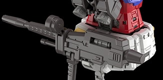 光束步槍前握把可利用與槍管平行的轉動軸調整角度。將握把朝側面抬起後,即可重現動畫中的雙手持槍姿勢。RG Ver.2.0還為該握把追加了可前後擺動的構造,得以更自由地擺設持槍的動作架勢。