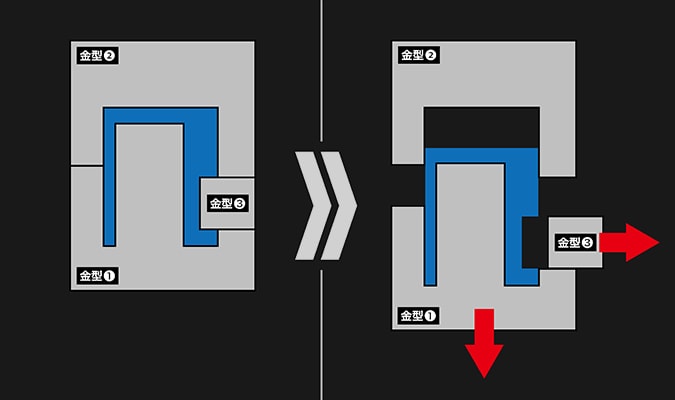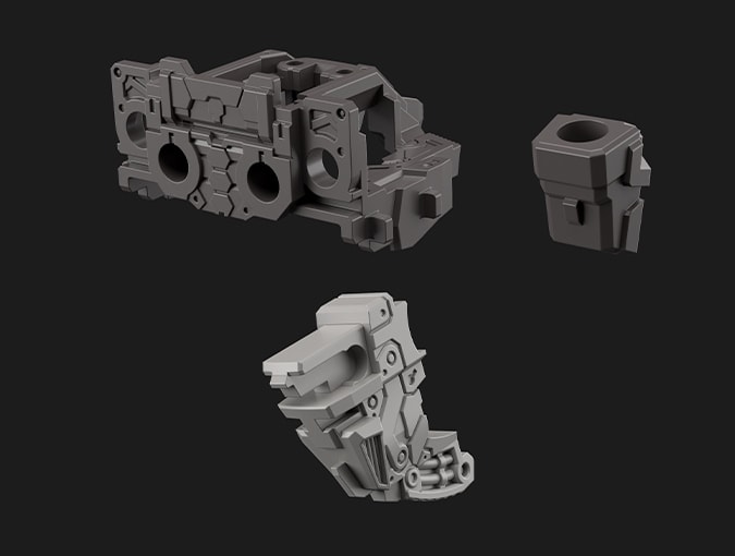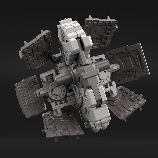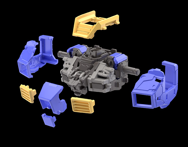 藉由大量使用滑動鋼模來製造零件,得以從各種方向為零件設置細部結構。如此一來不僅提高了精密感,更減少了組裝過程中得拼裝多個零件的必要性,在達到更易於組裝的成果之餘,亦節省了作業時間。