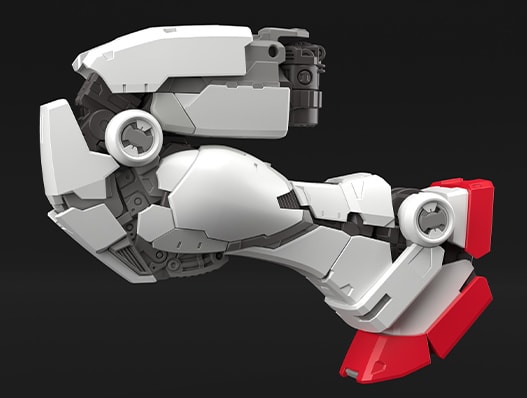 腿部裝甲採用了從動式可動的滑移機構。原本膝蓋一彎曲便會暴露在外的關節骨架能藉此用裝甲覆蓋住,如此一來不僅能化解空隙外露的問題,還能讓從大腿一路延伸至膝蓋的輪廓維持美感。