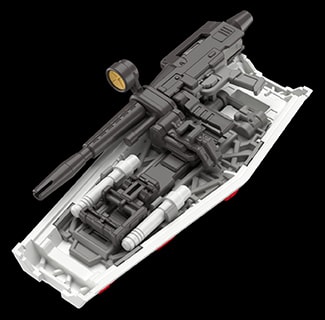 核心戰機可變形為核心區塊。重現小型可變戰鬥機形態的造型比例自然不在話下,而在小巧的核心區塊裡,更是設置了全新研發的輔助關節結構,有助讓鋼彈更為自由地擺設動作架勢。