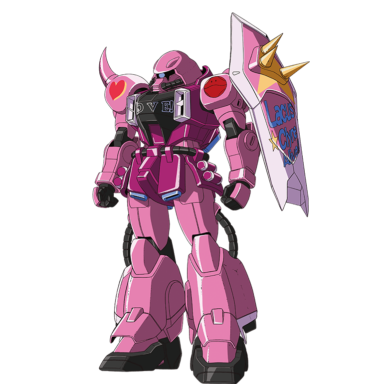 MECHA NAME 薩克戰士 FRONT DATA 為札夫特軍停戰後所研發新世代MS「新千年系列」中值得紀念的第一世代機型。是可以藉由追加或更換裝備和武器來對應各種戰局的次期主力兵器。赤色機體為露娜瑪莉亞的專用機。演唱會規格機體以拉克絲為形象被塗為粉色,且印有多彩的特殊標誌。 CHARACTER 露娜瑪莉亞・霍克 阿斯蘭・薩拉 蜜雅・坎貝爾 BACK TO LIST