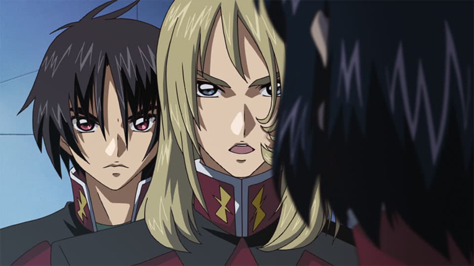 Meanwhile, Neo Lorrnoke awakens aboard the Archangel. To his confusion, the Archangel crew insist that Neo is in fact their lost comrade Mu La Flaga, but he has no memories of his life as Mu. The situation then takes a new turn as Chairman Dullindal begins a worldwide broadcast...