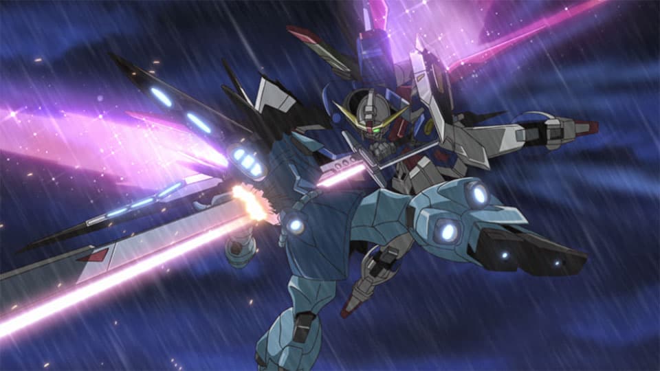 As Athrun and Meyrin escape from Gibraltar in a stolen mobile suit, Shinn and Rey pursue them in the new Destiny and Legend Gundams. Claiming that the fugitives have stolen classified information, Chairman Dullindal orders Shinn and Rey to shoot them down. Rey tells the confused Shinn that the traitors must be destroyed for the sake of Dullindal's dream of peace.