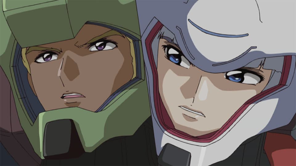 In the middle of this fighting, the demolition crew complete their work and break up the ruins of Junius Seven. The Minerva follows the remaining fragments into the atmosphere in order to break them up even further, while Shinn and Athrun continue fighting the mysterious mobile suits and confront the enemy leader.